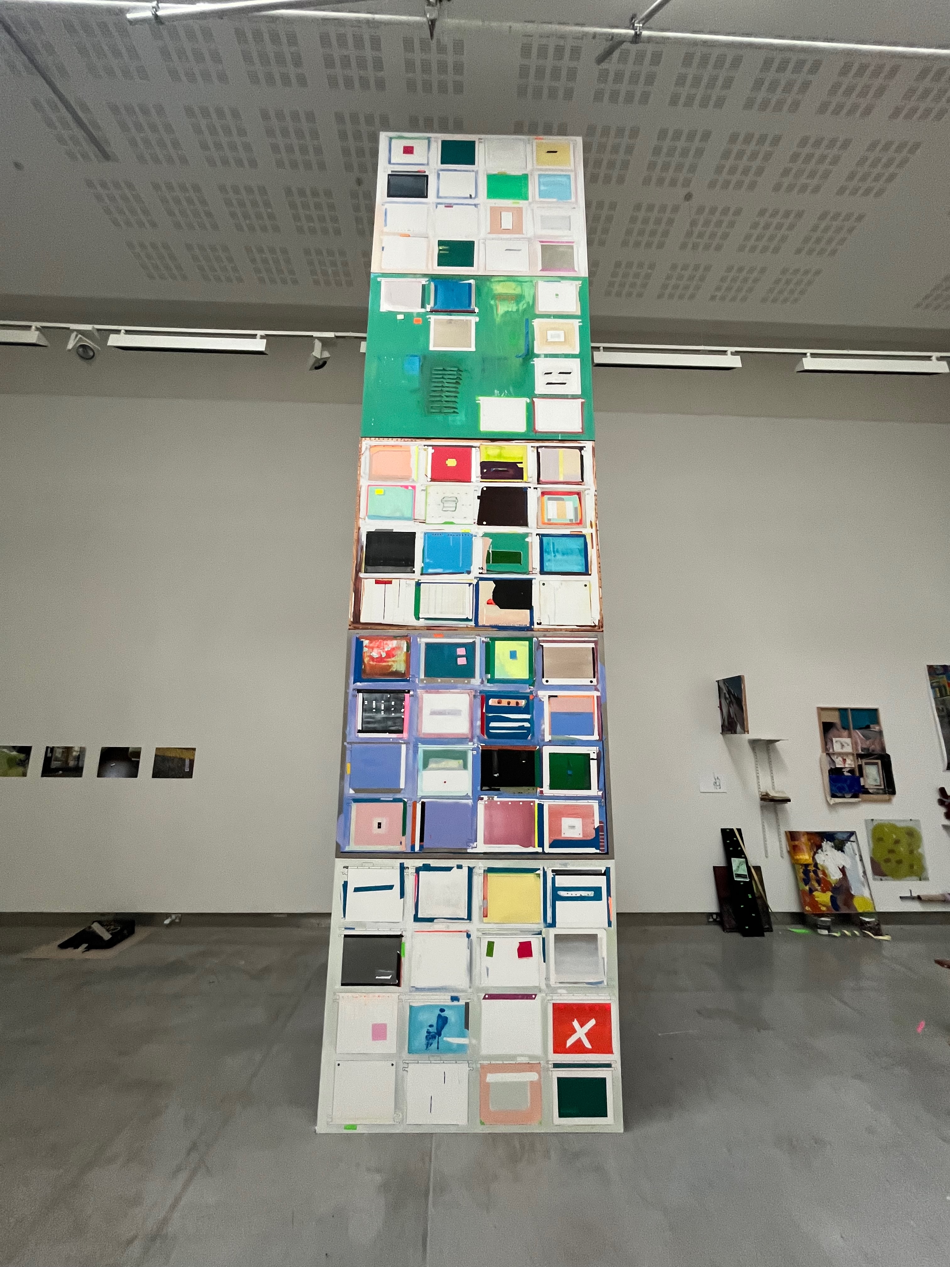 Referencing the systems theory of Niklas Luhmann, the artwork operates within structures of communication rather than as a fixed, autonomous object. Meaning emerges through relationships between site, viewer, image, and display—where distinctions are produced through positioning, colour coding, and spatial arrangement. Within this framework, painting and installation function as embedded systems, responsive to their environments and shaped through processes of circulation, encounter, and interpretation.